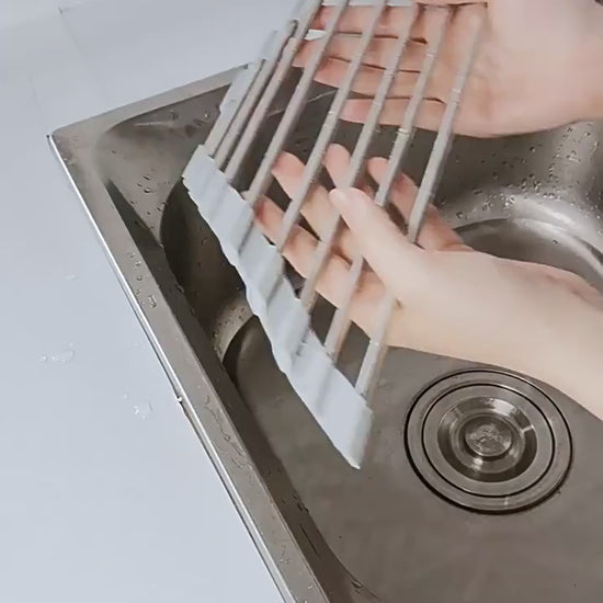 It's multi-functional: it can drain water from dishes, fruits and vegetables, and cleaning supplies, allowing them to air dry quickly. When not in use, it can be rolled up and folded for storage, saving space; it can also be disassembled for washing, leaving no bacteria or dirt behind. Perfect for small kitchens, it expands space and saves time, allowing for easy draining after washing.