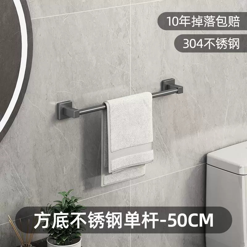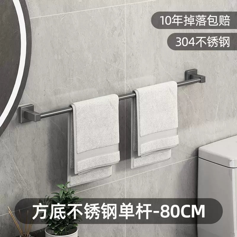 Gun gray stainless steel towel rack, towel bar, no need for drilling, single bar, bathroom, double bar, bath towel rack, bathroom rack, hotel