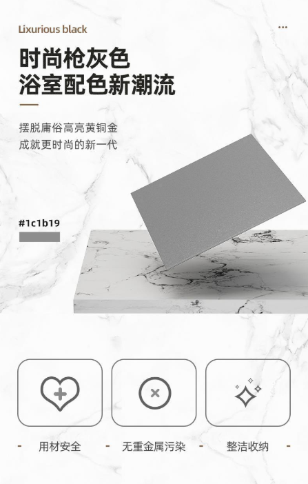 这款浴室毛巾架以枪灰色为基调,适配现代浴室的潮流审美,摆脱了传统亮色的俗气感,为卫浴空间增添高级质感。它采用304 不锈钢材质,搭配升级烤漆工艺,不仅耐磨损、抗腐蚀,表面细腻光滑,边缘经过精细打磨,日常使用不伤手。