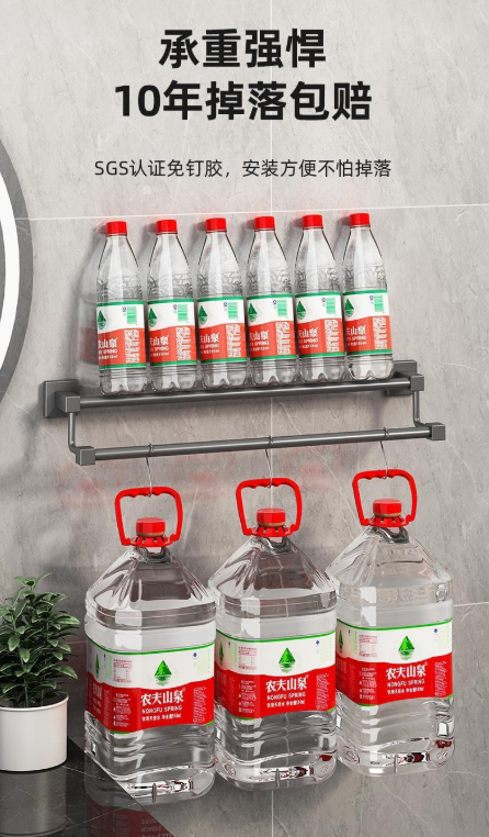 免打孔设计搭配 SGS 认证免钉胶,安装时无需破坏墙面,承重强悍,承诺 10 年掉落包赔。双层错位结构搭配加大间距,上层间距 7cm、下层间距 14cm,让毛巾通风不闷湿,有效减少细菌滋生,拿取也互不遮挡。无论是单杆还是双杆款式,都能满足不同家庭的收纳需求,让浴室整洁又美观。
